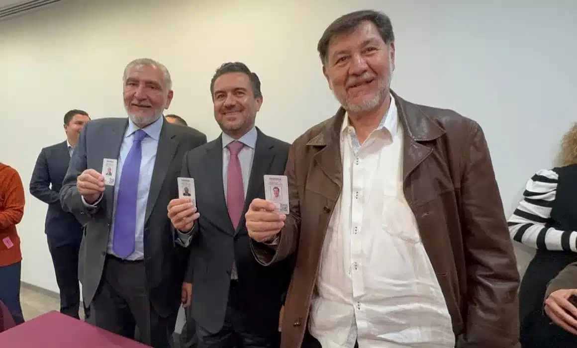 Yunes Márquez fue fotografiado junto a Adán Augusto López Hernández, coordinador de Morena en el Senado y a Gerardo Fernández Noroña, presidenta de la Cámara Alta, quienes también presumieron su credencial de Morena.