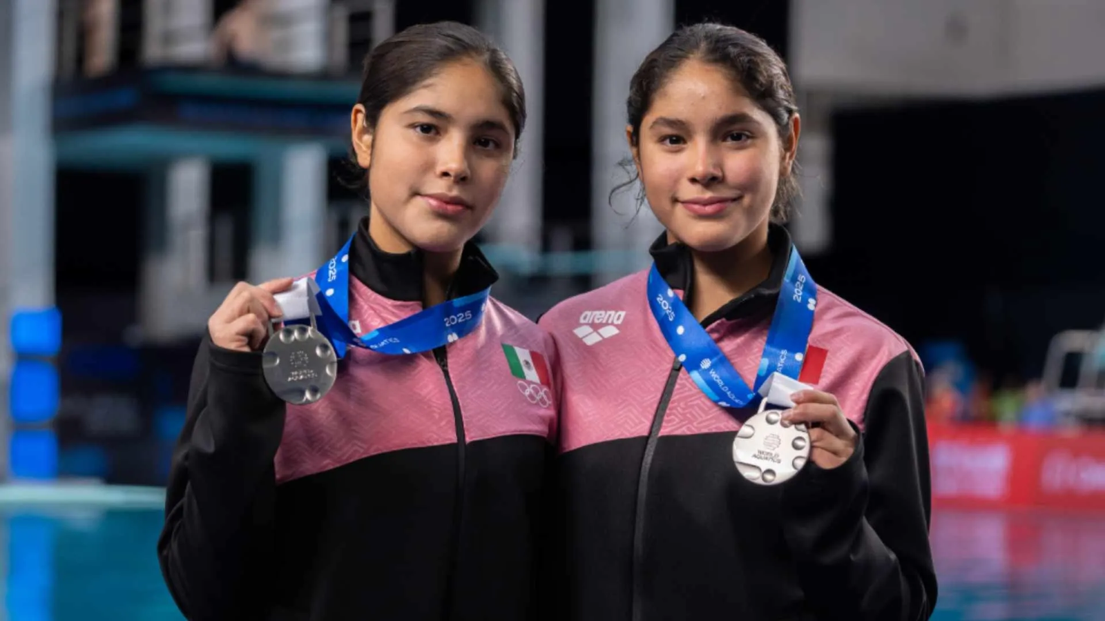 La primera medalla de la jornada sabatina fue histórica, las mexicanas y gemelas Mía Cueva y Lía Cueva, de apenas 14 años de edad, lograron dar para la delegación mexicana la presea de plata en clavados sincronizados de tres metros en trampolín.