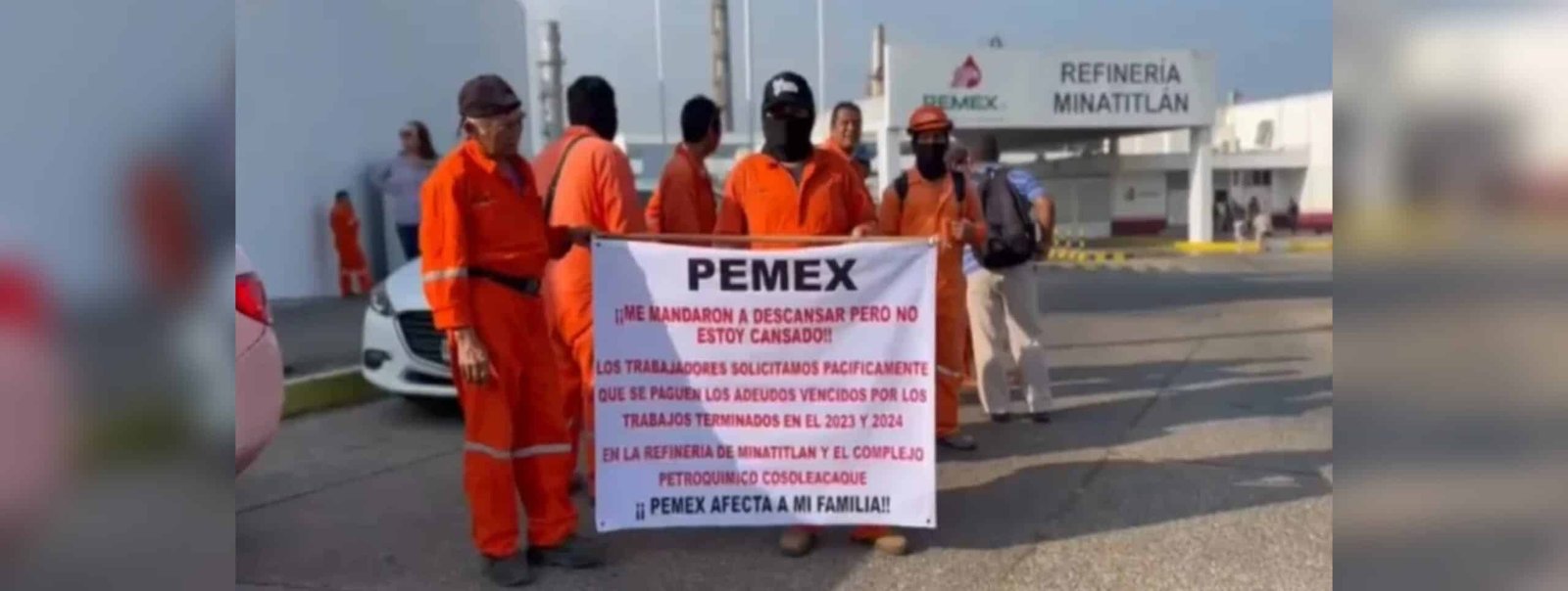 El martes 29 de abril fue el primer día en que los obreros, caracterizados de un overol naranja, se manifestaron en la entrada al complejo Petroquímico Cosoleacaque; sin embargo, no fueron atendidos por las personas que requerían y este miércoles 30, se han vuelto a plantar frente a la puerta norte de la refinería Lázaro Cárdenas de Minatitlán.