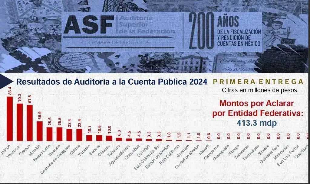 Según el informe entregado este lunes a la Cámara de Diputados, Veracruz encabeza la lista nacional de entidades con mayor presunto daño patrimonial, aunque el resultado corresponde solo a tres auditorías aplicadas hasta el momento.