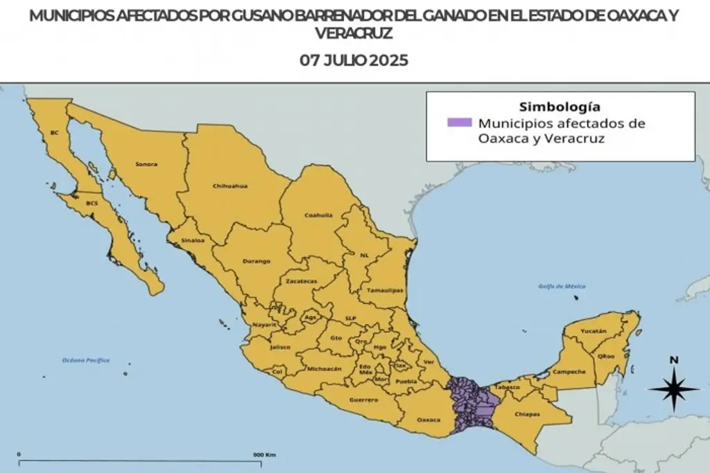 En la misma infografía se refiera que se confirmó otro caso de gusano barrenador en el sur del estado de Veracruz el 7 de mayo pasado.