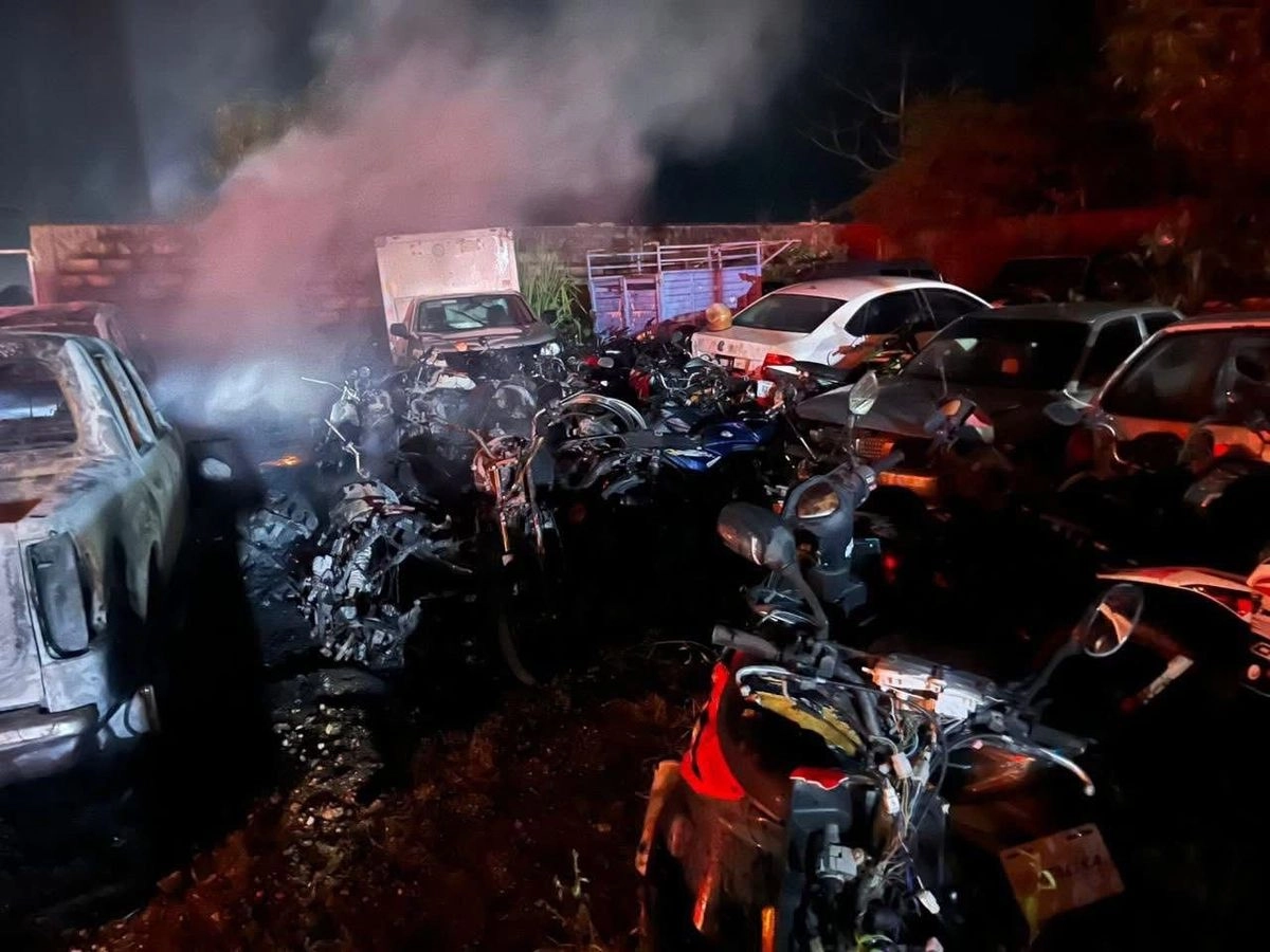 Durante la madrugada el fuego calcinó 21 motocicletas, 3 camionetas de batea, dos camionetas cerradas y un automóvil.