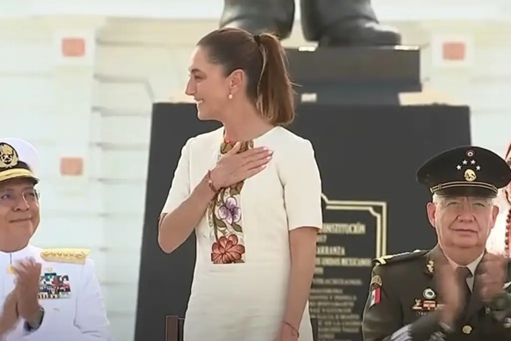 En la ceremonia la acompañan la gobernadora Rocío Nahle, mandos de Marina, Sedena, del Congreso de la Unión, de la Suprema Corte y miembros del gabinete federal.
