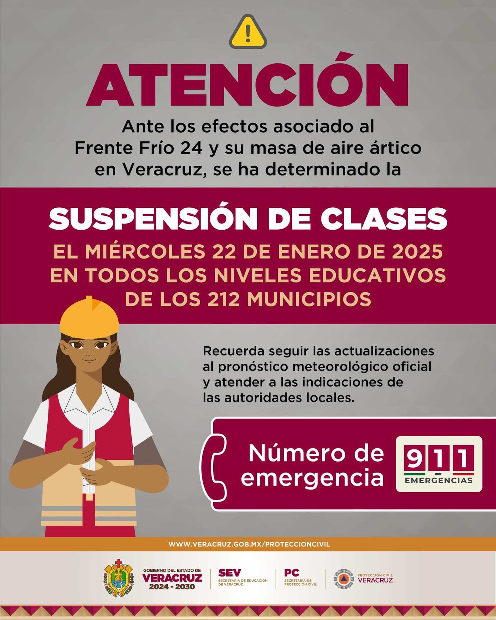 A causa del intenso frío, la Secretaría de Educación de Veracruz ordenó suspender clases la tarde de este 21 de enero y para mañana en los 212 municipios de la entidad.