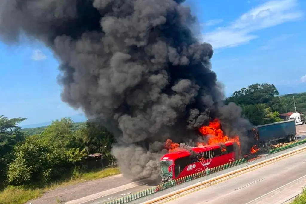Arde en llamas autobús de pasajeros en autopista con dirección a Veracruz